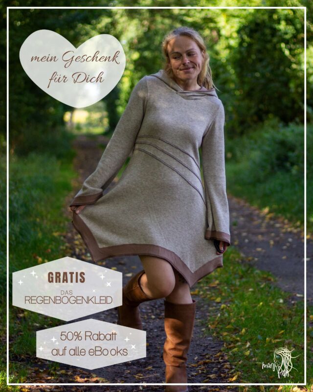 Mein Geschenk am heutigen Tag ist das vielseitige und wandelbare „Regenbogenkleid“ für Damen von Gr. 34 – 50 inklusive A4-, A0- und Beamerdatei.