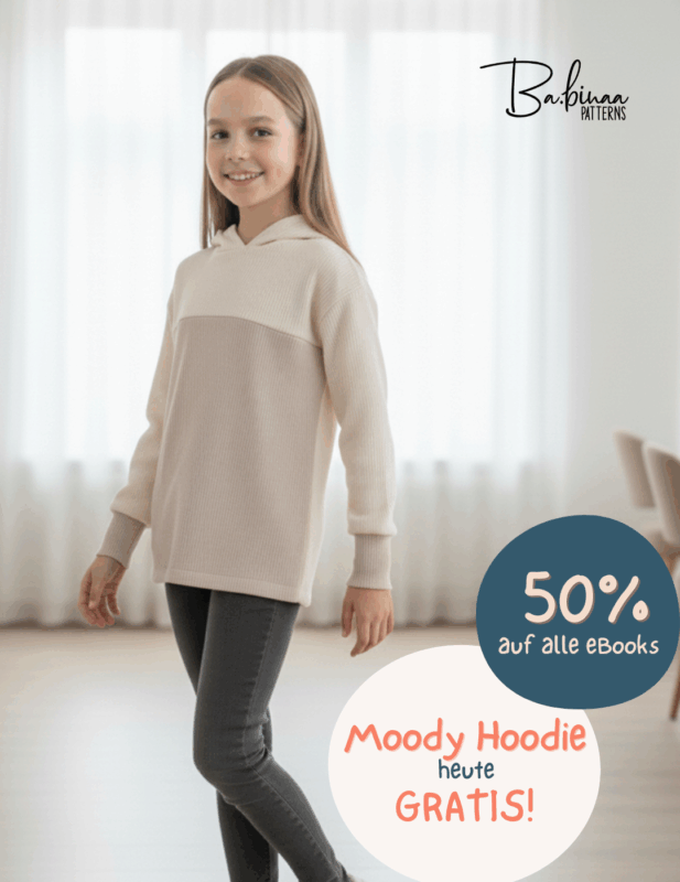 Ich freue mich sehr, dass ich im letzten eBookmacher-Adventskalender dabei sein darf. Unser Geschenk an dich: Der Moody Hoodie – er ist ein lässiger Basic-Hoodie, der blitzschnell genäht ist. Nur heute bekommst du ihn komplett kostenlos!