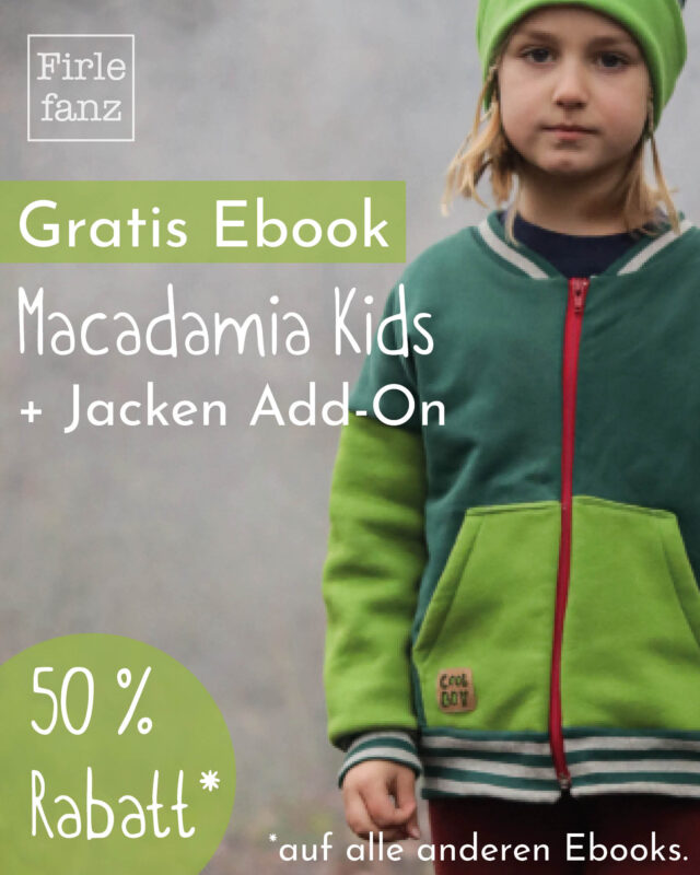 Du erhältst nur heute das Ebook Macadamia für Kinder (Gr. 74 - 164) gratis. Macadamia ist ein lässiger Sweater mit vielen Varianten. Ganz neu dabei ist neben dem Romantik-Add-On ein praktisches Jacken-Add-On. So wird im Nu aus deinem Sweater eine lässige Sweatjacke.